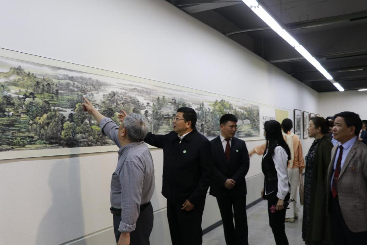 开幕式后,王立兵和与会领导、专家一起参观了“以美育人”刘应宗从艺60周年中国画作品展。《遗爱湖胜景图》是此次画展的一大亮点,全卷长34米,以遗爱湖十二景为主要内容,创作历时9个半月,是目前最大的黄冈山水画卷,被誉为黄冈版的清明上河图。