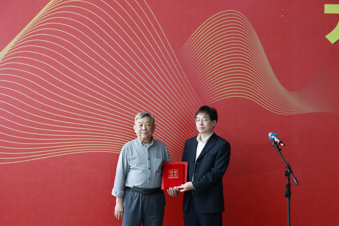 开幕式上,王立兵向刘应宗先生赠送了纪念品并宣布作品展开幕,王锋代表公司接受刘教授捐赠的画作,并向刘应宗先生颁发了收藏证书。