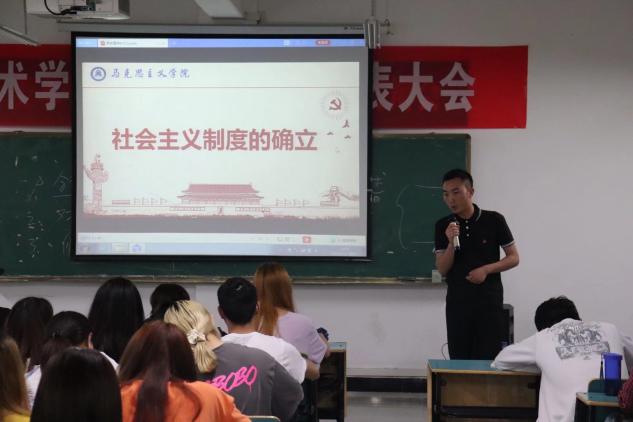 甘洪瑶以“社会主义制度的确立”为主题,讲述了中国共产党在民不聊生、破败不堪的旧中国诞生,领导亿万中国人民建立起富强民主的新中国,到今天有了建设和发展特色社会主义的大好局面。他呼吁广大青年学习党史,必须深刻领会,用心思考,不仅要入眼入耳,更要入脑入心。最后强调党的历史虽然只有100年,但党的每一次进步都来之不易,每一个决定都经过深思熟虑、冷静权衡,我们一定要向先辈们、先烈们学习,心系党的事业,全心全意为民服务,为祖国发展贡献力量!