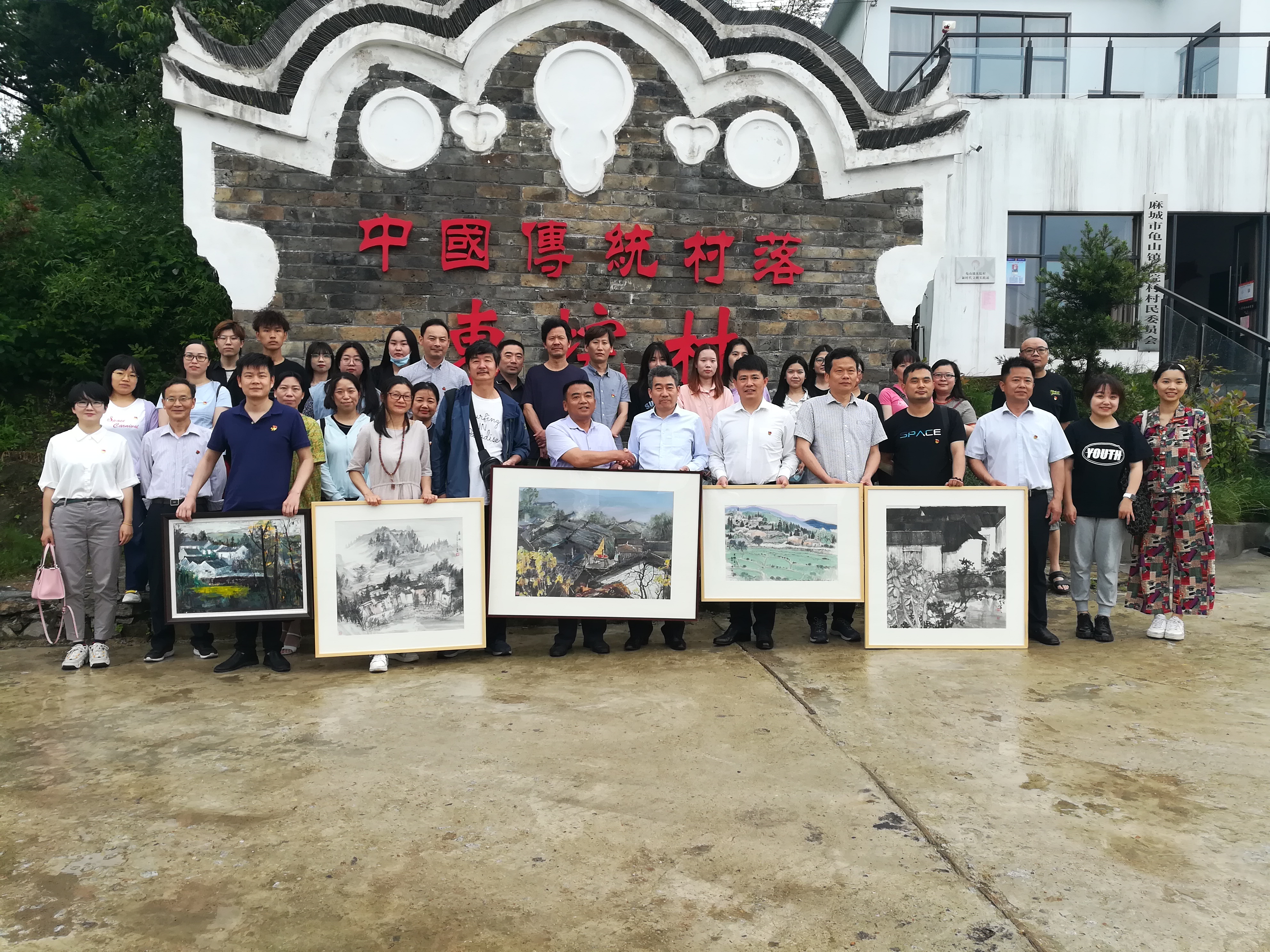 仪式上,马志斌董事长代表公司向东垸村捐赠绘画作品,东垸村党支部书记袁功富代表东垸村接受捐赠,并对此次无偿捐赠画作表示衷心的感谢。此次捐赠的5件作品由公司党员教师冯松涛、黎际文、柯希仑、方艳、王雷创作完成,作品均以东垸村风景为主题,展现了大别山传统村落丰富的民俗文化与自然资源。