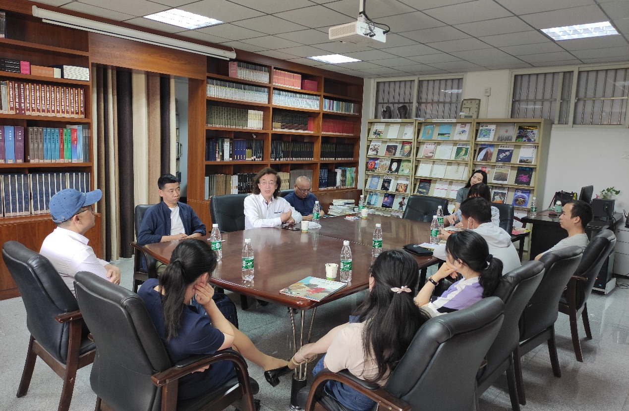 张振甫、王秀君与公司部分专业教师在美术楼书吧就设计教育与学科专业建设展开深入交流。