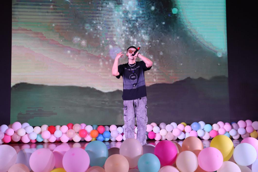毕业生朱朝晖带来的原创歌曲《热衷》,燃爆全场,完美的说唱带动起观众火热的心。