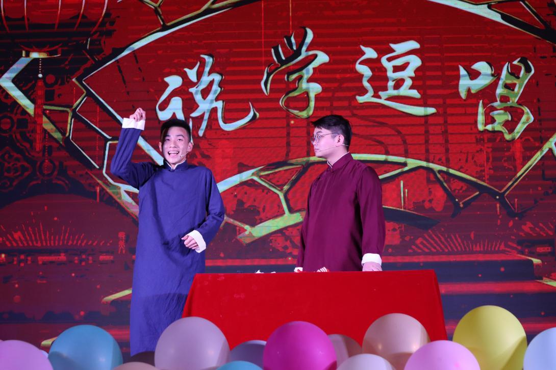 由张浩、张诸强带来的小品《说学逗唱》,包袱横飞笑料十足,引的观众掌声连连。